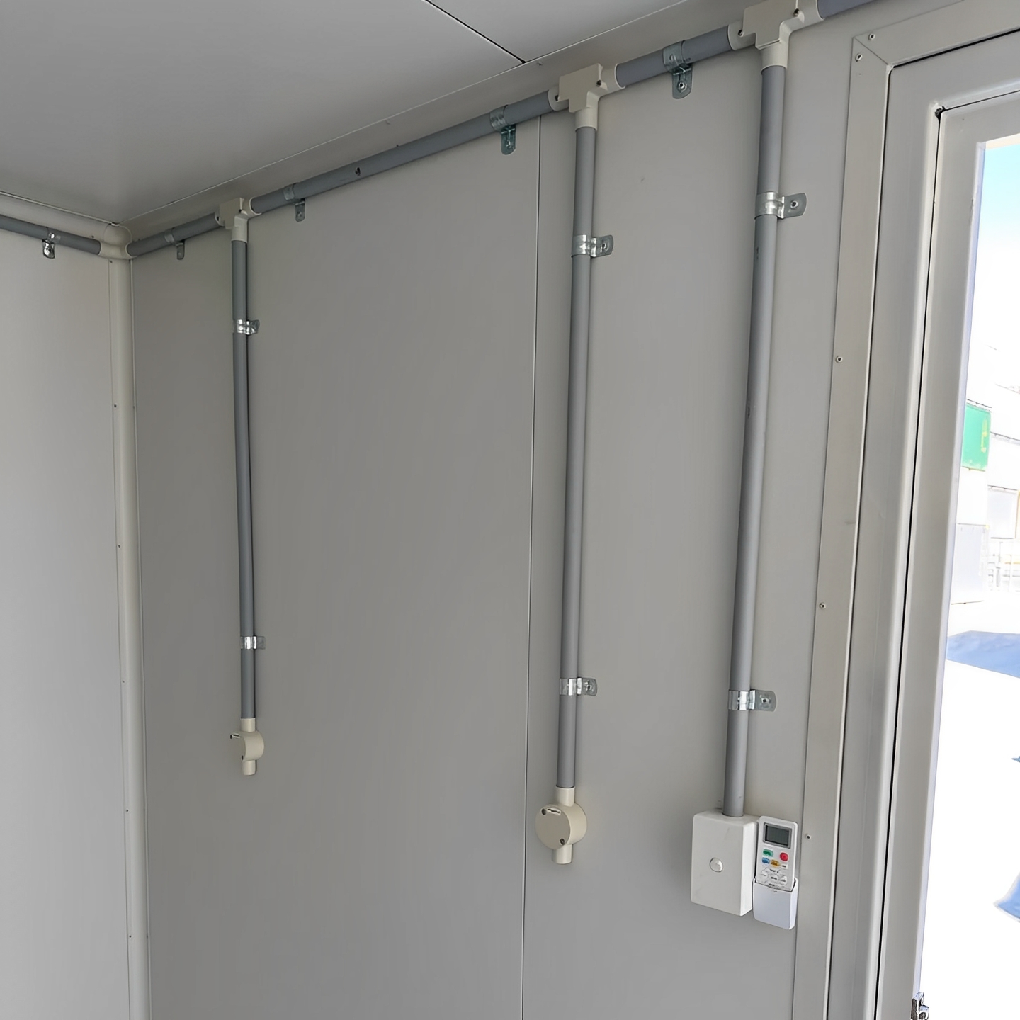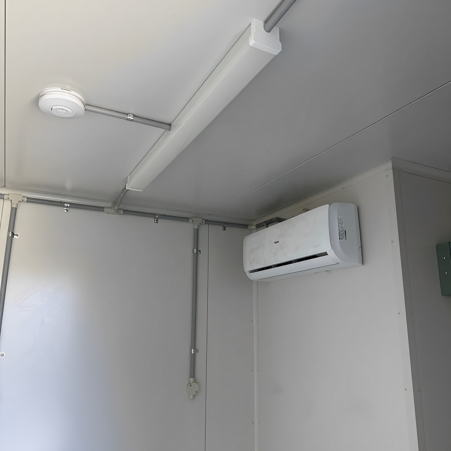 Equipped with a high-performance AC unit, this container keeps interiors cool in hot climates and warm when needed, ensuring a comfortable working or living environment in any season.