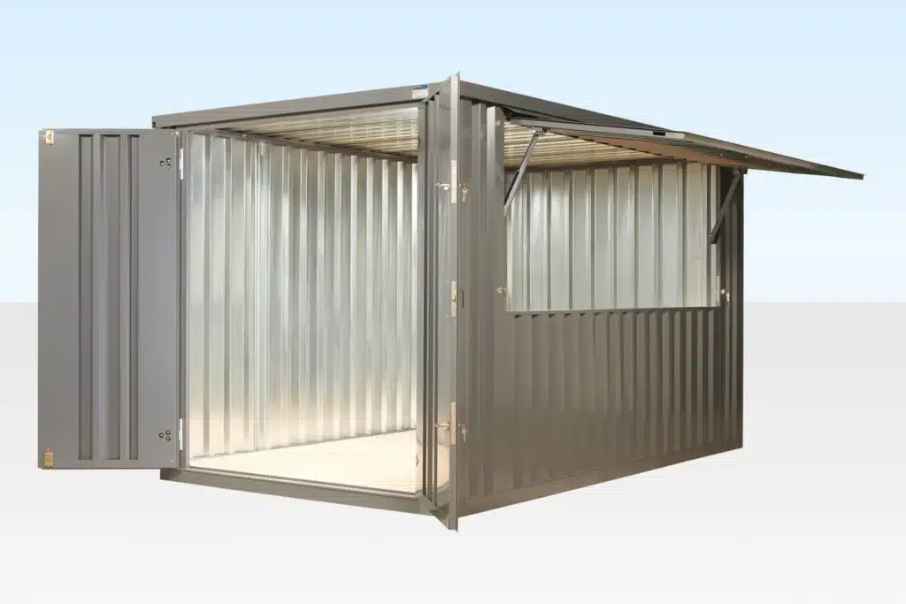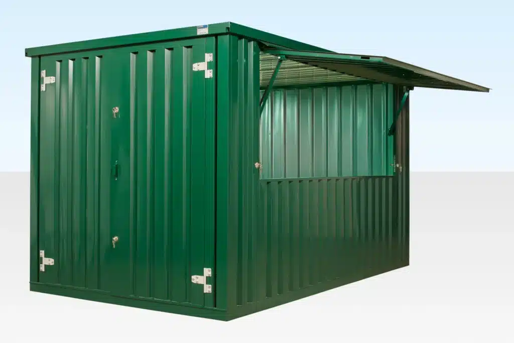 The 4m Flat Packed Kiosk is a versatile, man-portable unit designed for temporary or semi-permanent uses. With a side-opening hatch hinged from the top, the kiosk can be set up on either of the long sides to suit your requirements. Each part of the unit is lightweight enough for four people to handle safely, removing the need for expensive crane transport. Small enough to be moved on a car trailer, it’s perfect for events, festivals, and businesses needing flexible serving or retail space. The interior and exterior can also be fitted out or clad for longer-term applications.