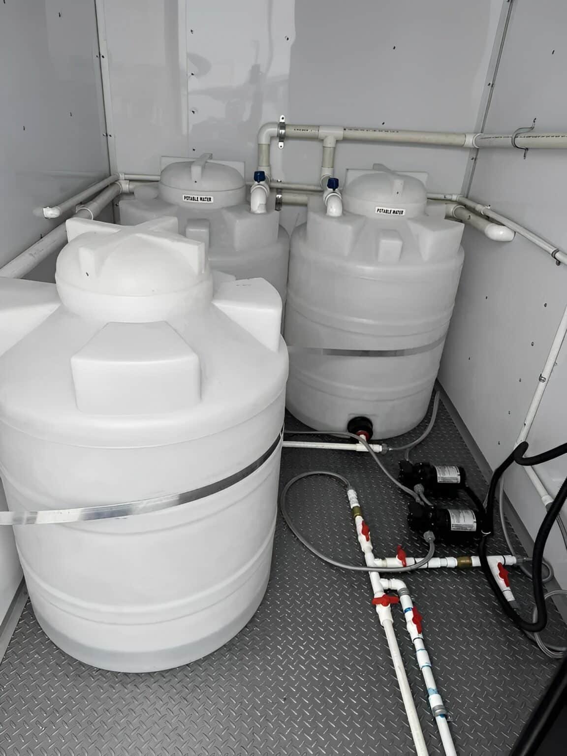 High-Capacity Water System – Features (2) 53-gallon freshwater tanks, (1) 53-gallon grey water tank, and (2) 48-gallon waste tanks for extended use.